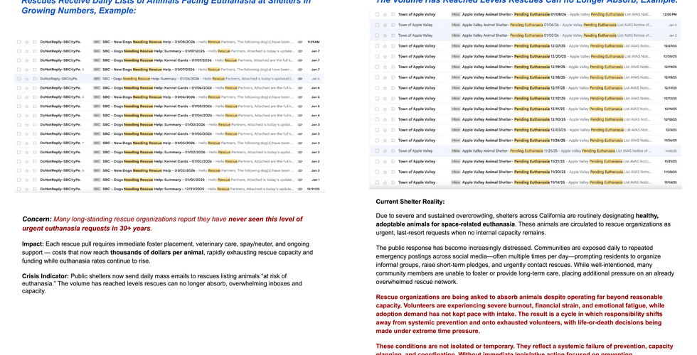 California Domestic Animal Crisis, Legislative Brief 2026