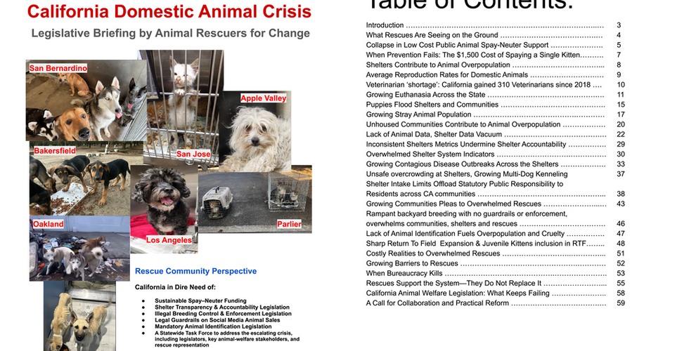 California Domestic Animal Crisis, Legislative Brief by Animal Rescuers For Change:
