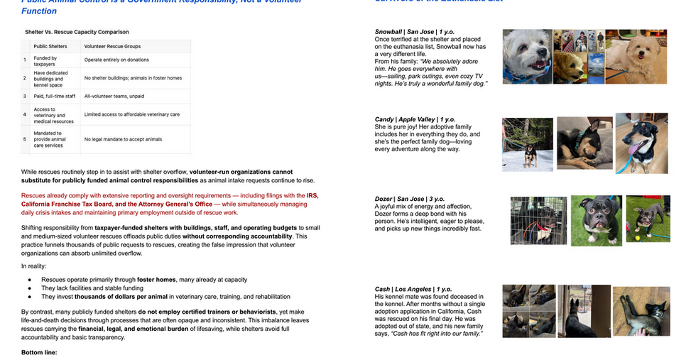 Dear Fellow California Rescue Organizations, Shelter Volunteers, Networkers, and Animal Advocates,